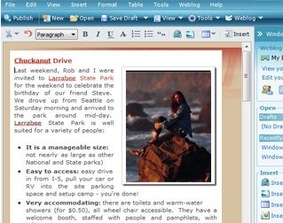 It also gives you drag and drop image support (see above). I'm planning to step up up posting on the myriad (yep, spell check works) of blogs I've started and abandoned, so this should keep me engaged for a while.